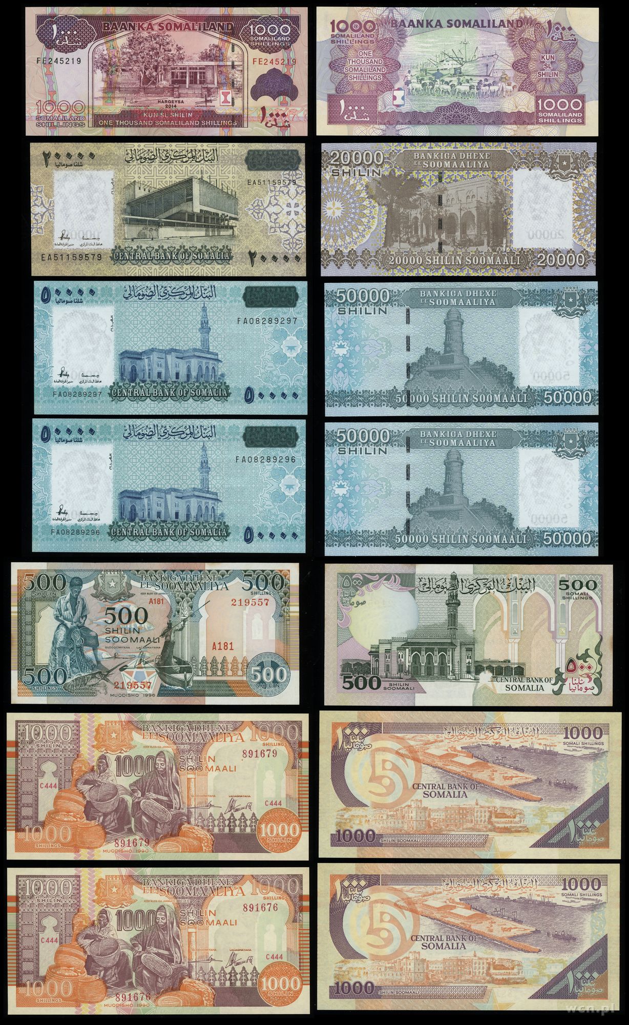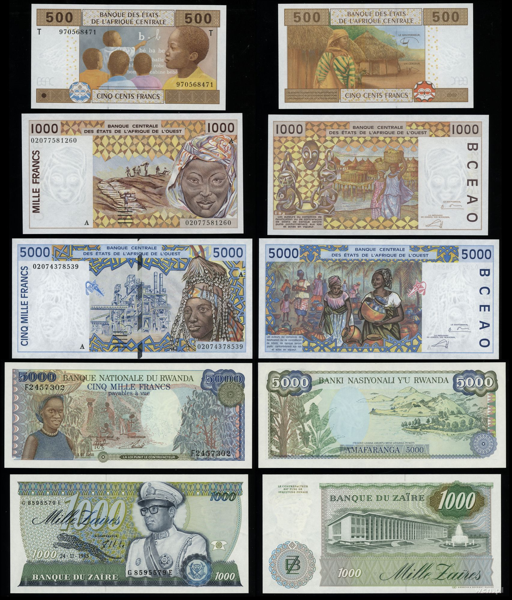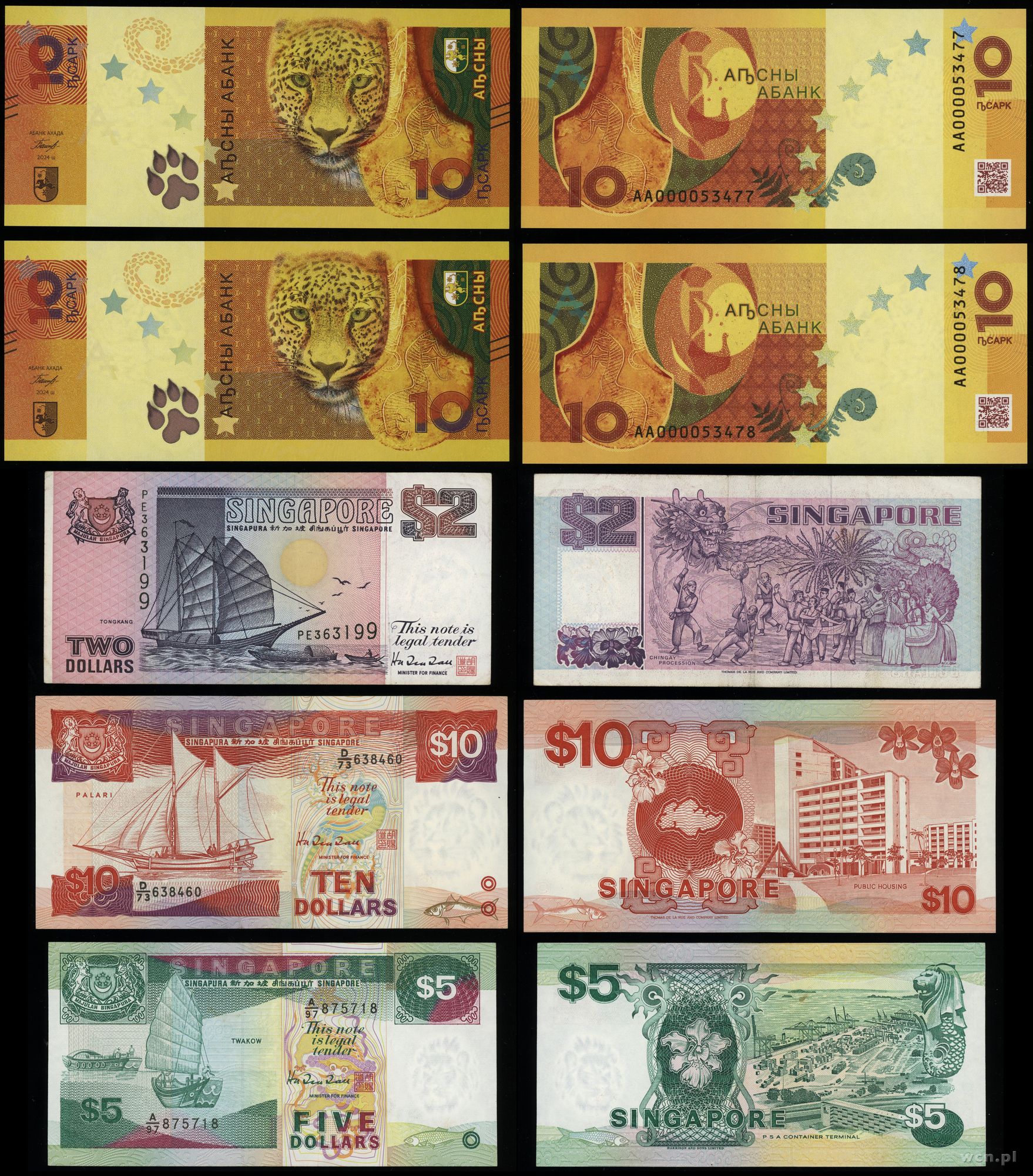zestaw różnych banknotów, zestaw 5 banknotów, 1985–2022