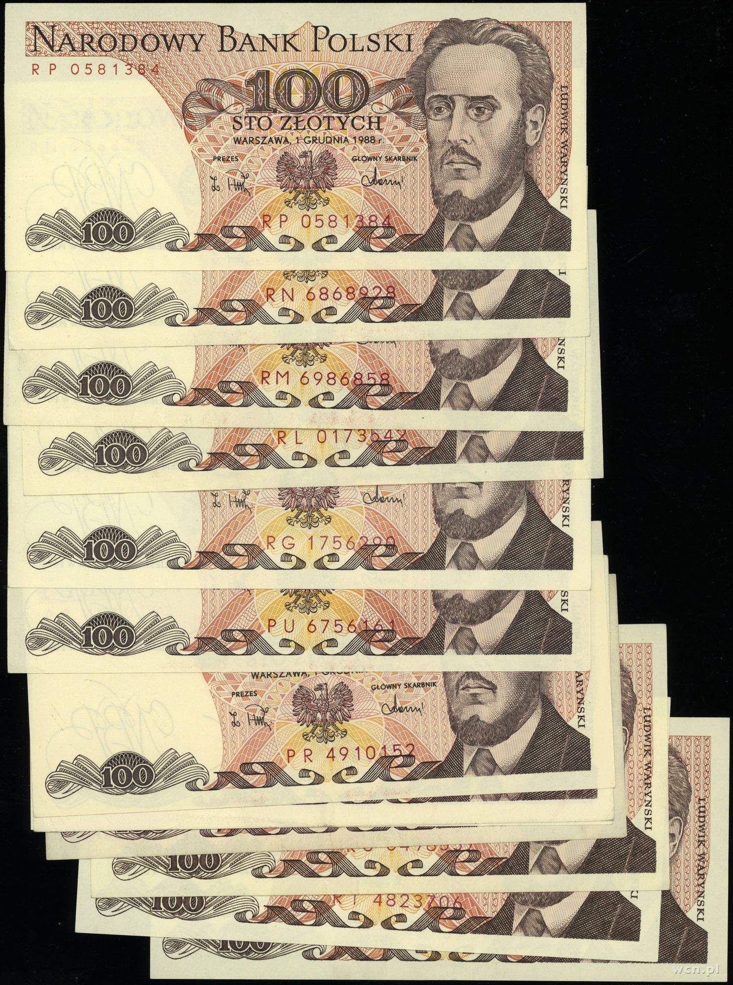 Polska, zestaw: 13 x 100 złotych, 1986–1988