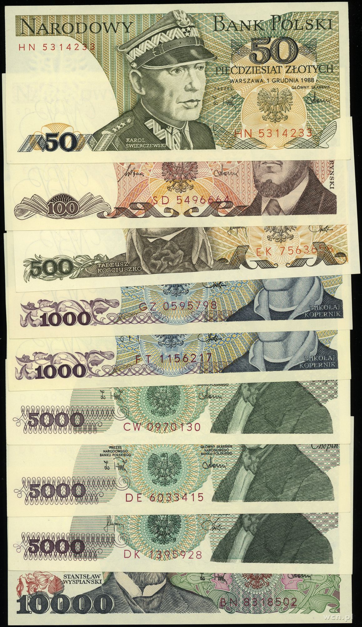 Polska, zestaw 9 banknotów, 1982–1988