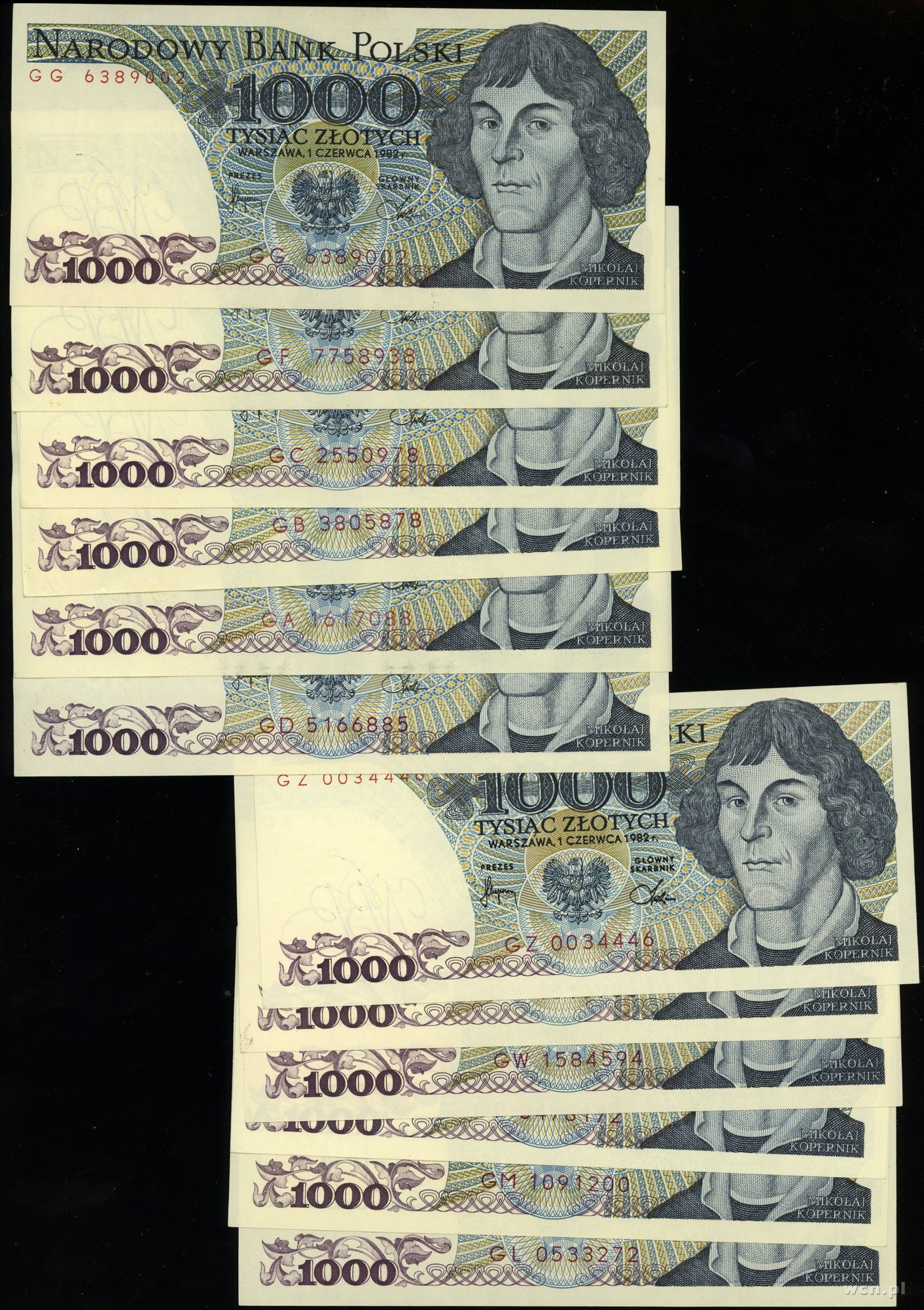Polska, zestaw 12 banknotów o nominale 1.000 złotych, 1.06.1982