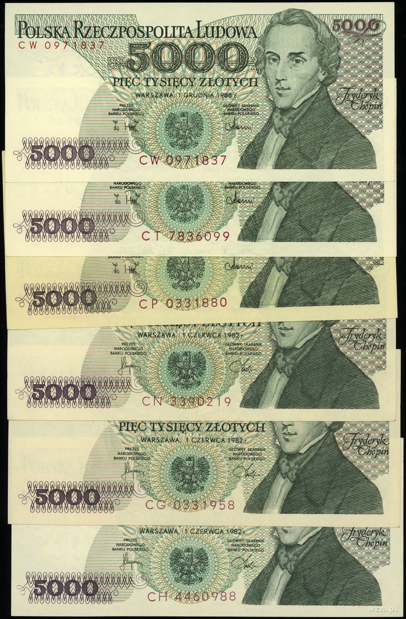 Polska, zestaw: 6 x 5.000 złotych, 1982–1988