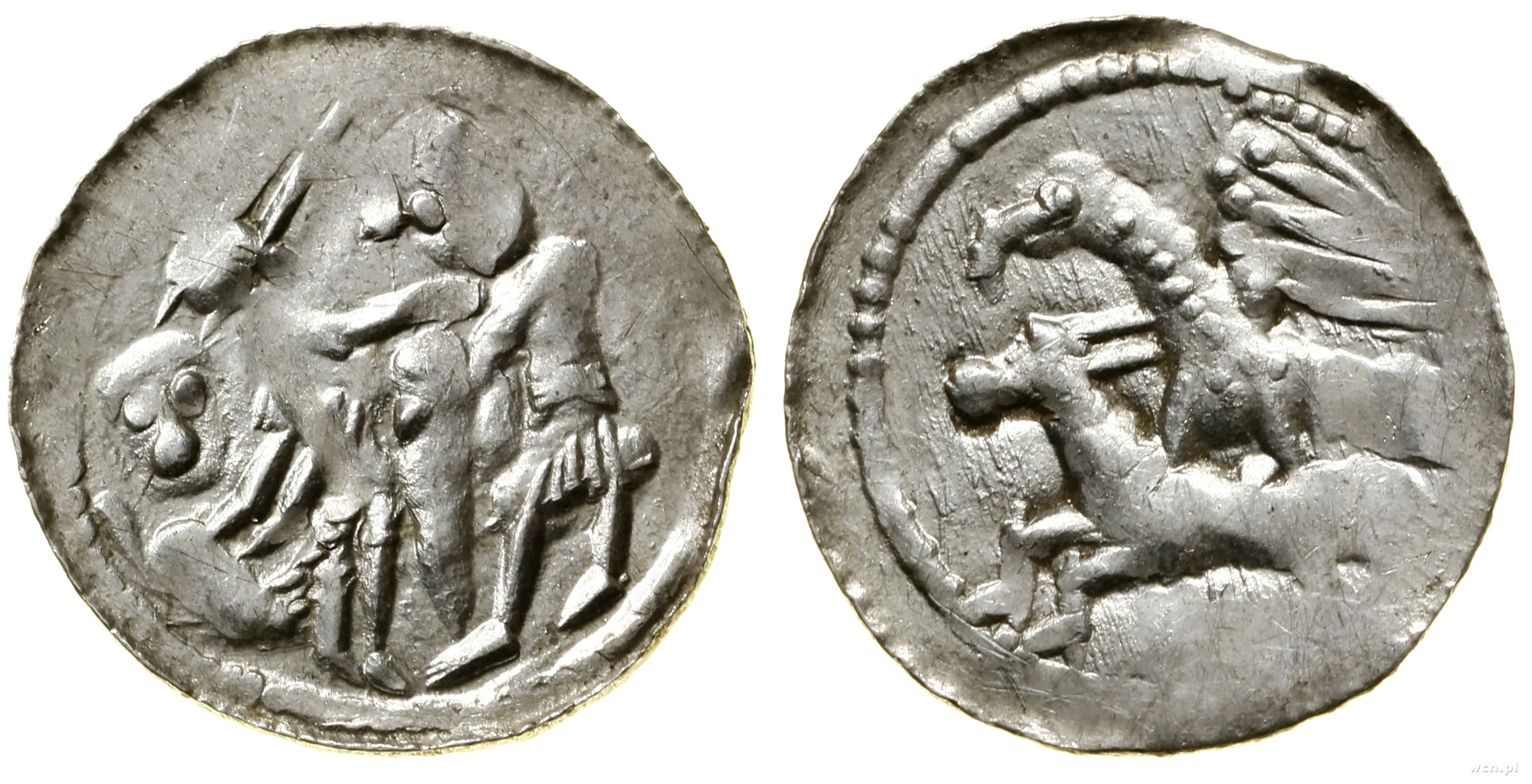 Aw: Rycerz z mieczem i tarczą, stojący nad jeńcem, legend... | III+ |