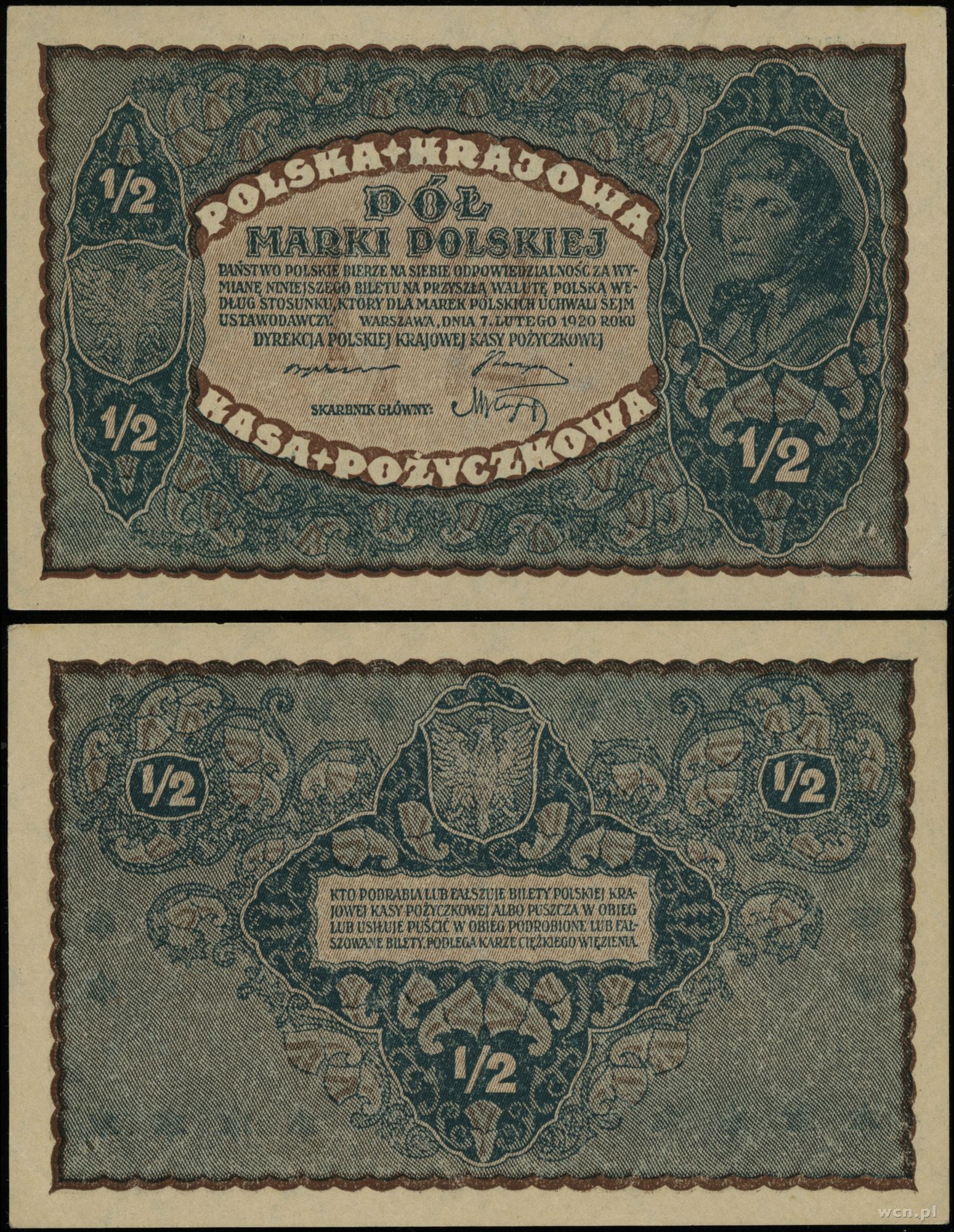 Polska, 1/2 marki polskiej, 7.02.1920
