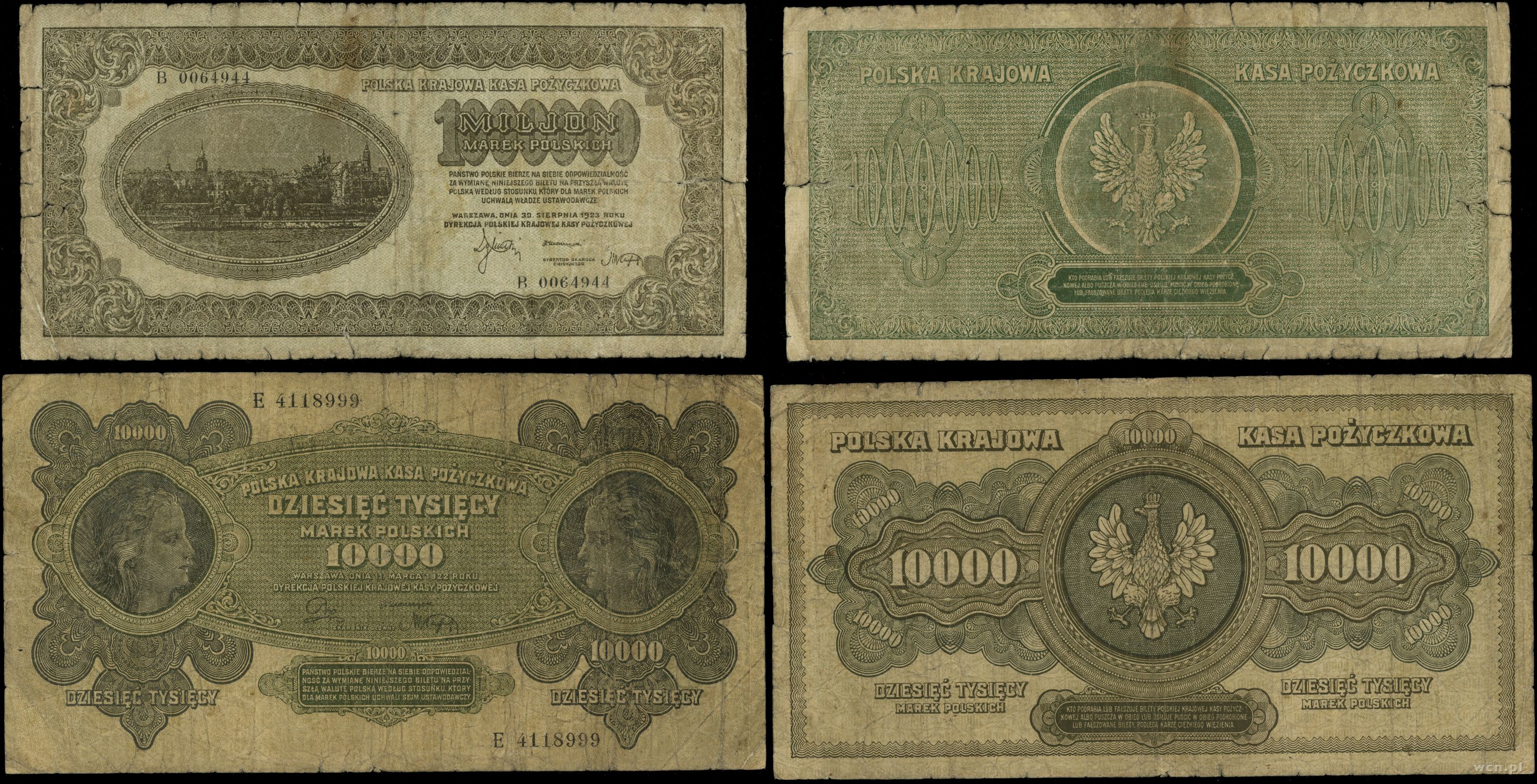 1) 10.000 marek polskich 11.03.1922, seria E 2) 1.000.000... | V/VI |