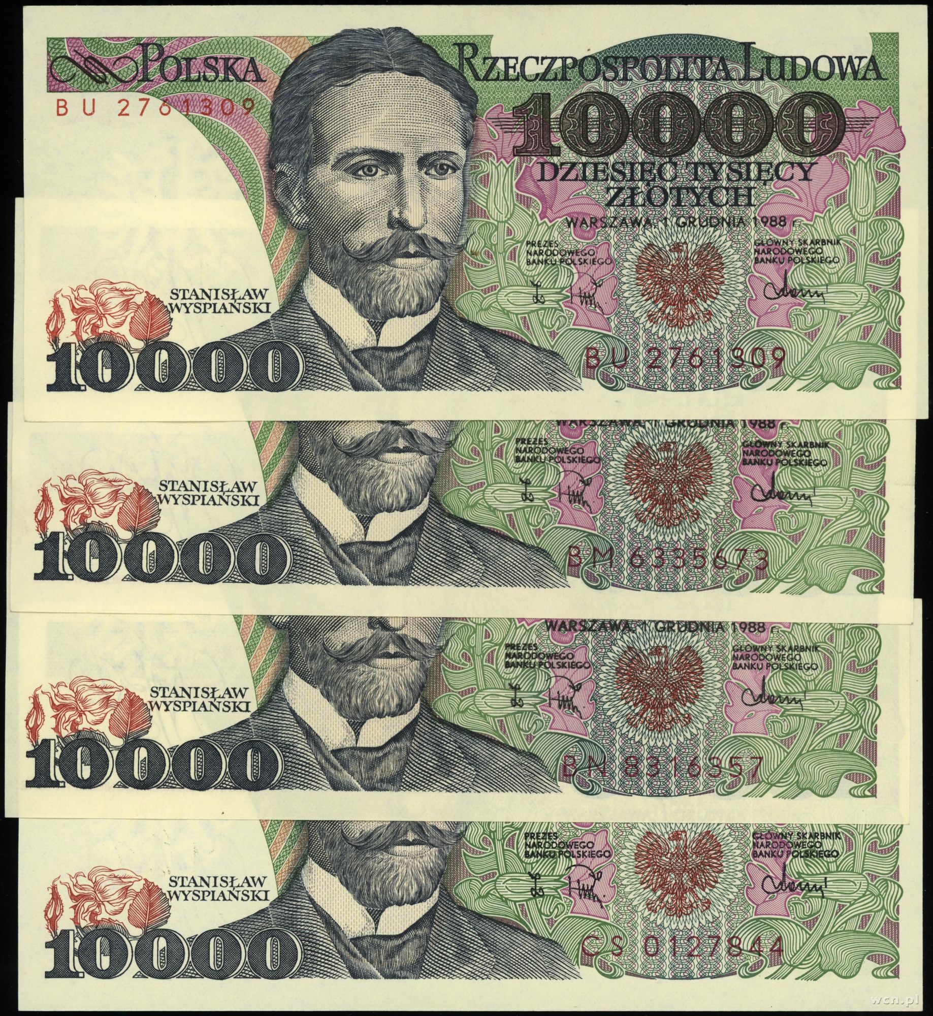 Polska, zestaw: 4 x 10.000 złotych, 1.12.1988