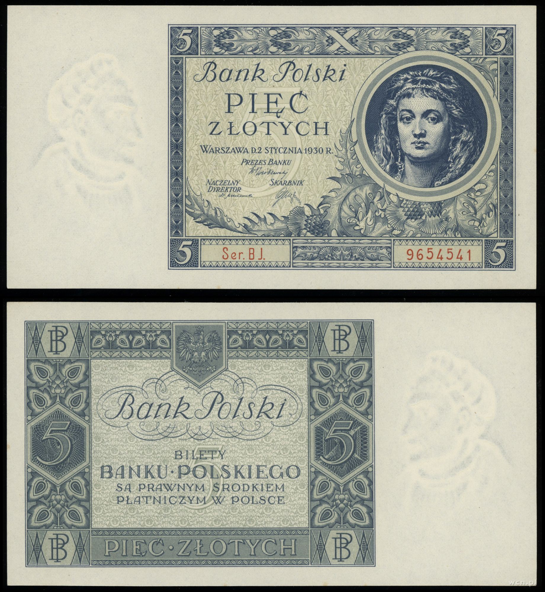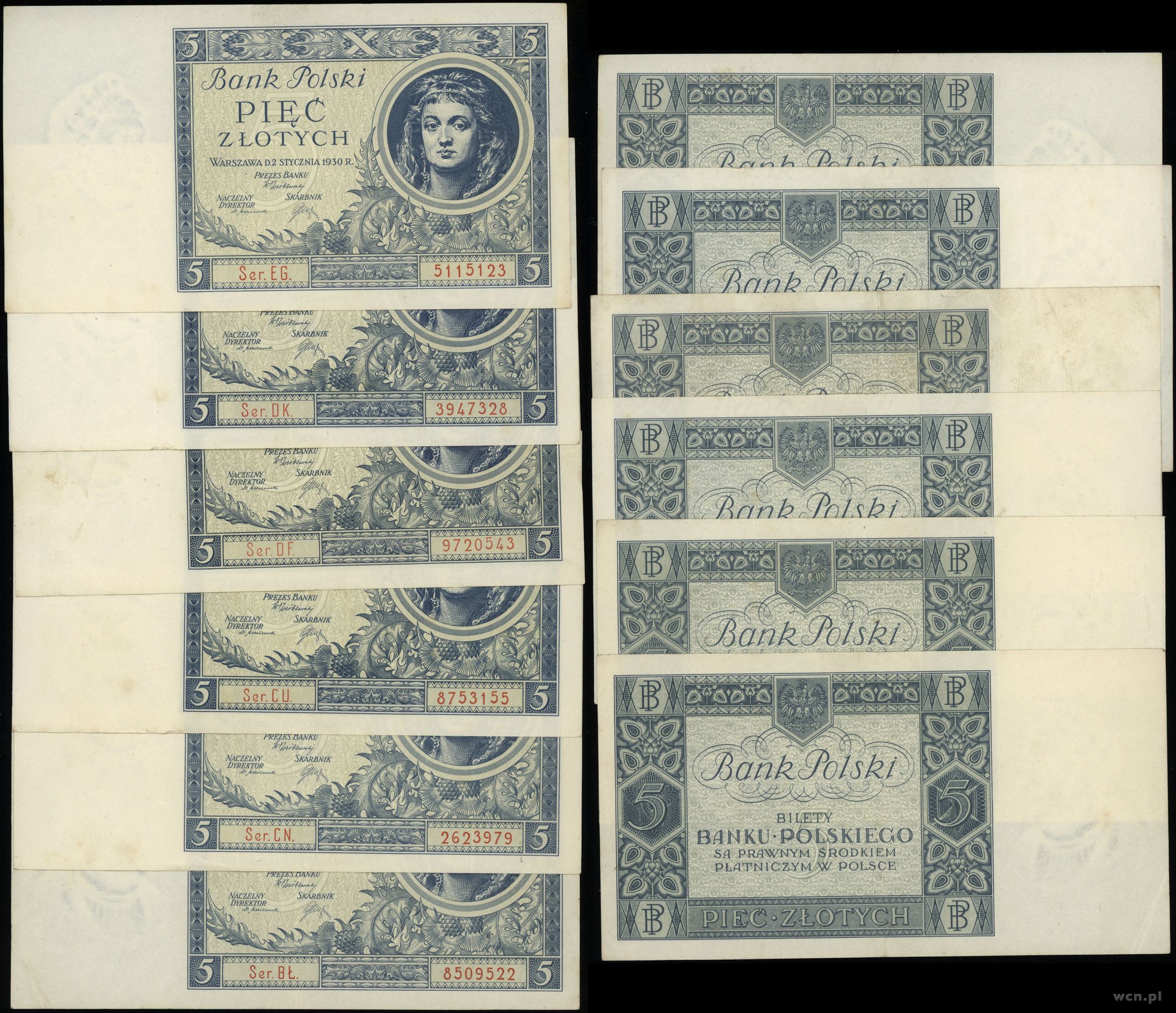 Polska, zestaw: 6 x 5 złotych, 2.01.1930