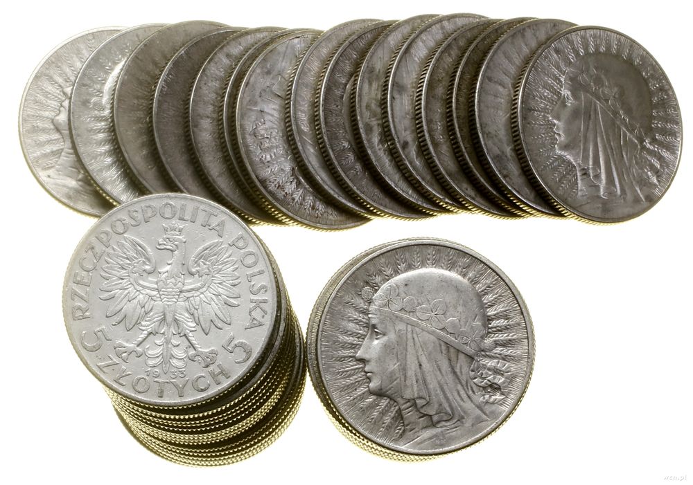 Polska, zestaw 50 x 5 złotych, 6 x 1932, 27 x 1933, 17 x 1934