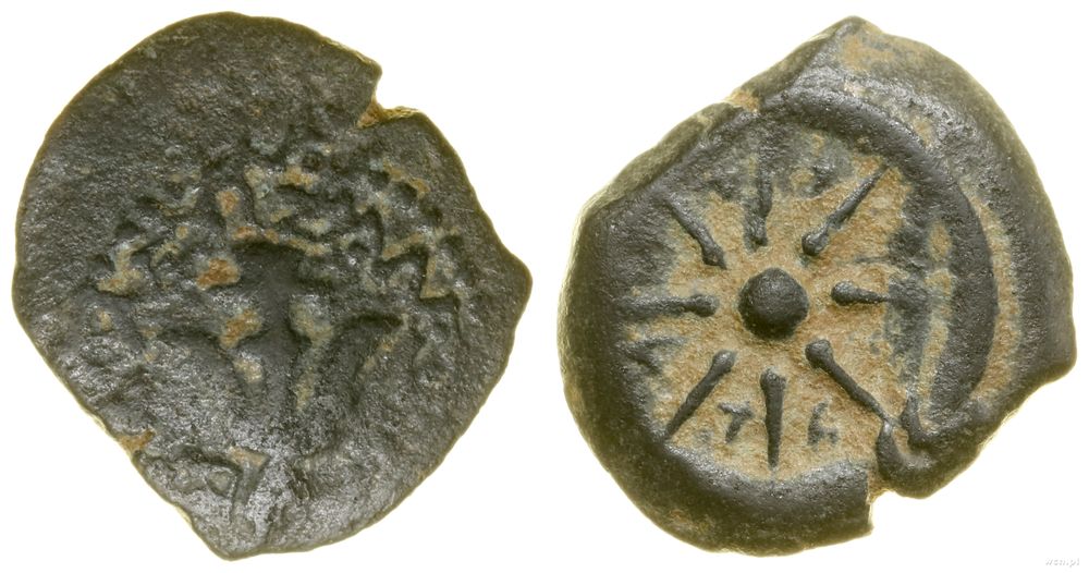 | Opis: | Rzym prowincjonalny - Judea - Dynastia Hasmonaean - Aleksander Jannaj (103–76 pne), prutah, Jerozolima, Aw: Kotwica, legenda, Rw: Ośmiopromienna gwiazda, legenda |