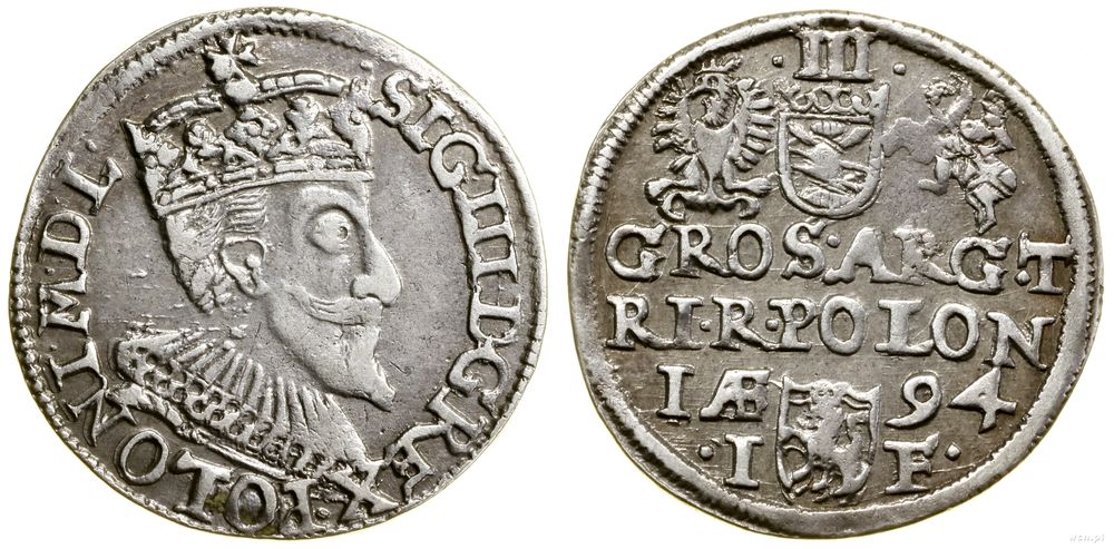 | Opis: | Polska - Zygmunt III Waza (1587–1632) - monety koronne, trojak, 1594, Olkusz, bez trójnogiej strzały, herb Wazów w prostej tarczy, płaska korona króla |