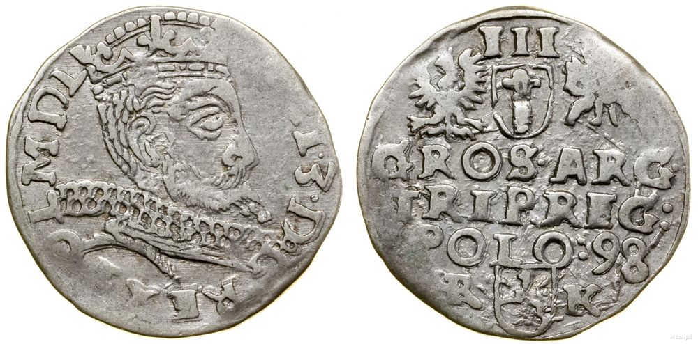 | Opis: | Polska - Zygmunt III Waza (1587–1632) - monety koronne, trojak, 1598, Wschowa, tytulatura SIGI 3, u dołu rewersu HR-K rozdzielone herbem Lewart |