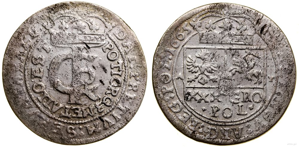 | Opis: | Polska - Jan II Kazimierz Waza (1649–1668) - monety koronne, tymf, 1665, Bydgoszcz, w legendzie awersu SALV |