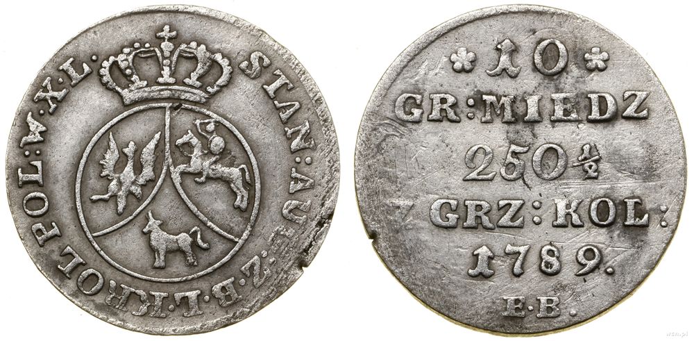 | Opis: | Polska - Stanisław August Poniatowski (1764–1795) - monety koronne, 10 groszy miedziane, 1789 EB, Warszawa |
