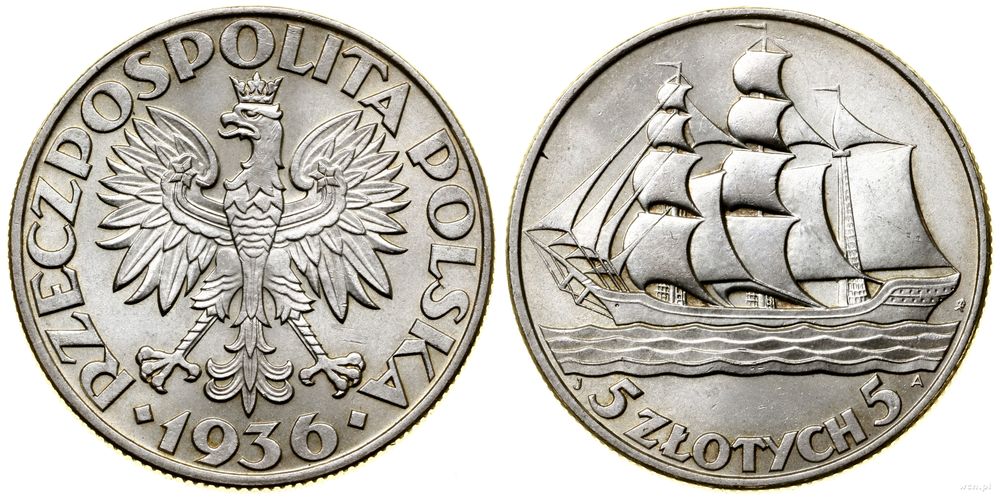 | Opis: | Polska - II Rzeczpospolita Polska (1918–1939) - monety obiegowe, 5 złotych, 1936, Warszawa, Żaglowiec |