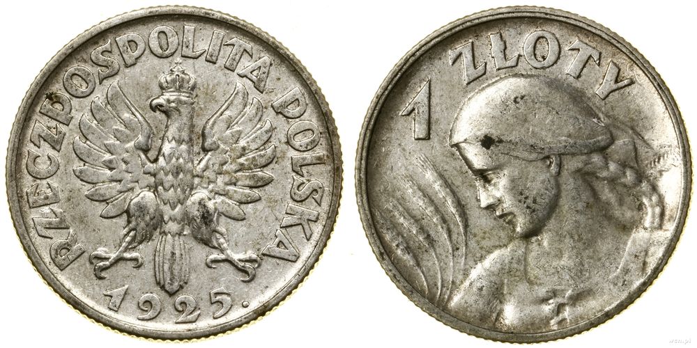 | Opis: | Polska - II Rzeczpospolita Polska (1918–1939) - monety obiegowe, 1 złoty, 1925, Londyn, popiersie kobiety z kłosami |