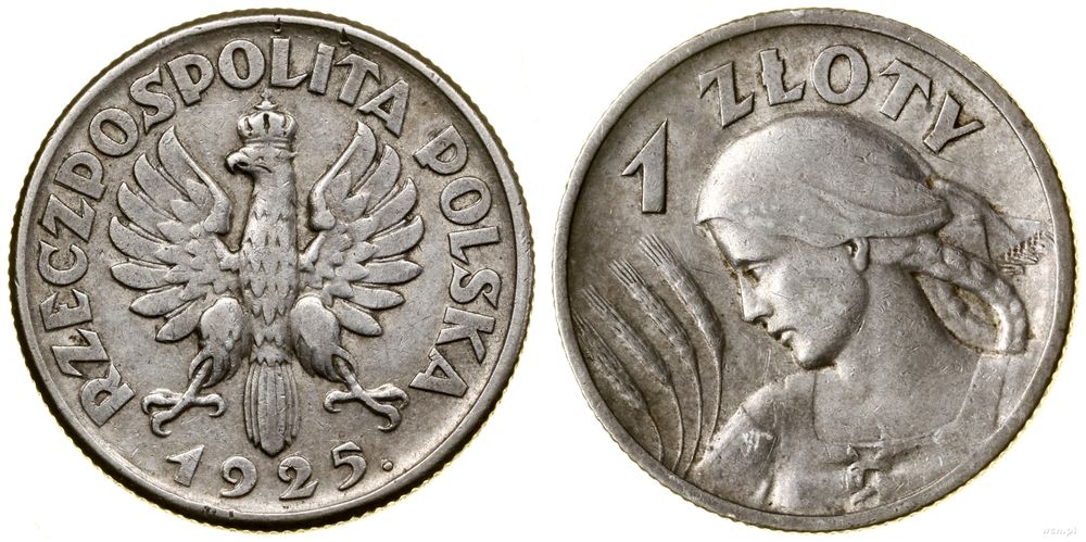 | Opis: | Polska - II Rzeczpospolita Polska (1918–1939) - monety obiegowe, 1 złoty, 1925, Londyn, popiersie kobiety z kłosami |