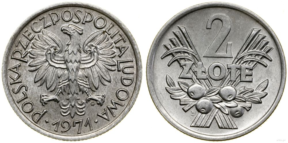 | Opis: | Polska - Polska Rzeczpospolita Ludowa (1952–1989) - monety obiegowe i kolekcjonerskie, 2 złote, 1971, Warszawa |