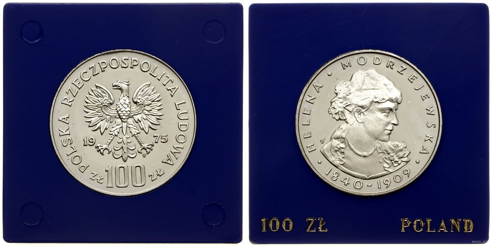 | Opis: | Polska - Polska Rzeczpospolita Ludowa (1952–1989) - monety obiegowe i kolekcjonerskie, 100 zlotych, 1975, Warszawa, Helena Modrzejewska (1840–1909) |