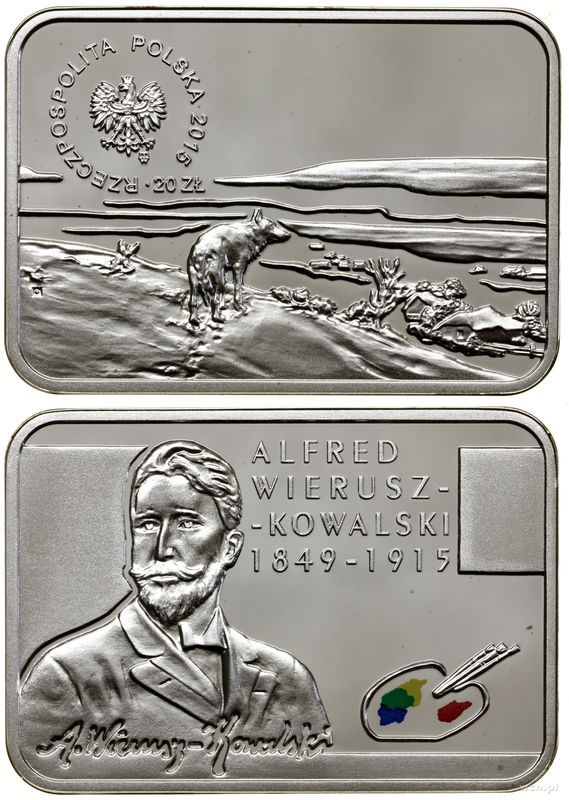 | Opis: | Polska - III Rzeczpospolita Polska (od 1989) - monety kolekcjonerskie, 20 złotych, 2015, Warszawa, Polscy Malarze XIX/XX w. – Alfred Wierusz-Kowalski |
