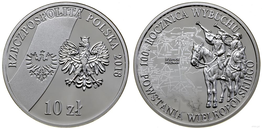 | Opis: | Polska - III Rzeczpospolita Polska (od 1989) - monety kolekcjonerskie, 10 złotych, 2018, Warszawa, 100. rocznica wybuchu Powstania Wielkopolskiego |