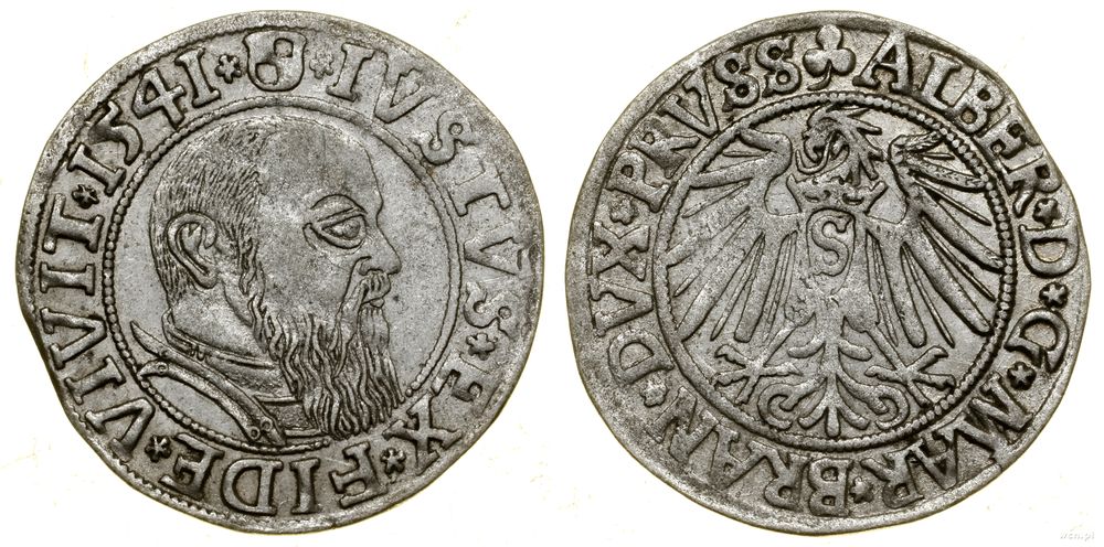 | Opis: | Prusy Książęce (1525–1657) - Albert Hohenzollern (1525–1568), grosz, 1541, Królewiec, odmiana z długą brodą księcia, końcówka legendy rewersu PRVSS |