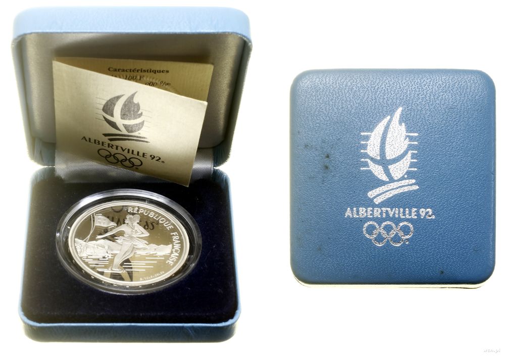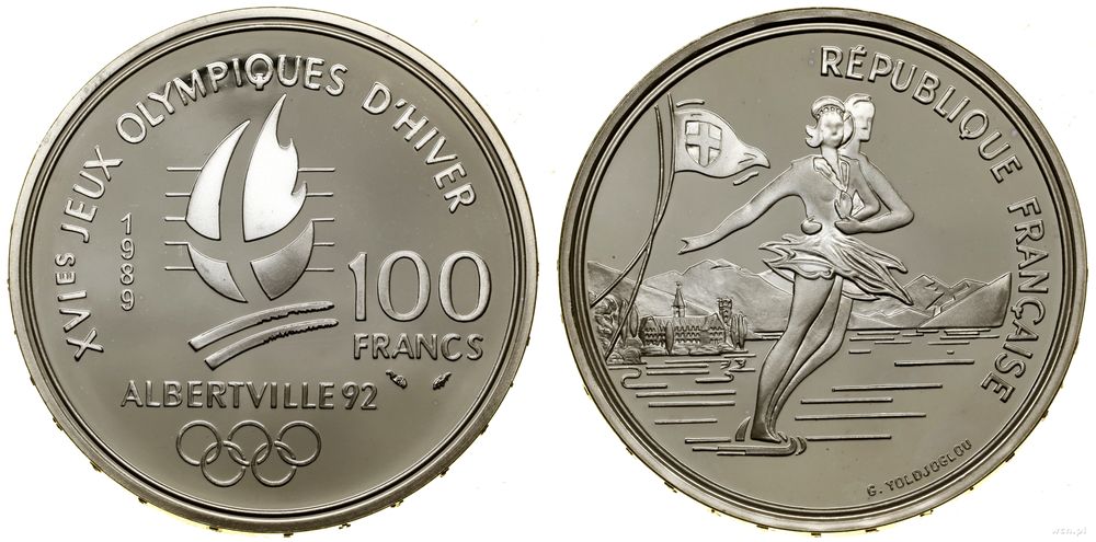 | Opis: | Francja - V Republika (od 1958), 100 franków, 1989, Paryż, XVI Igrzyska olimpijskie w Albertville 1992 (para łyżwiarzy figurowych) |