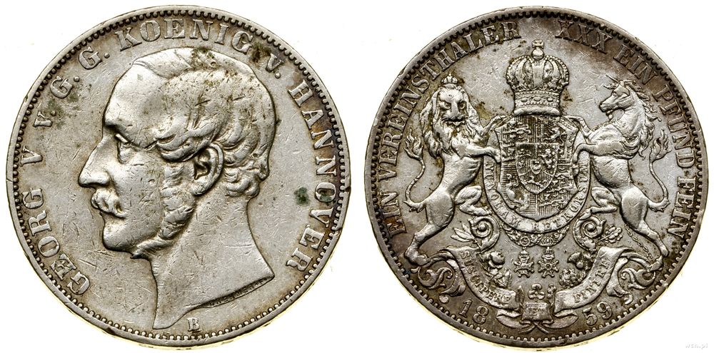 | Opis: | Niemcy - Hanower - Jerzy V (1851–1866), talar, 1859 B, Hanower |