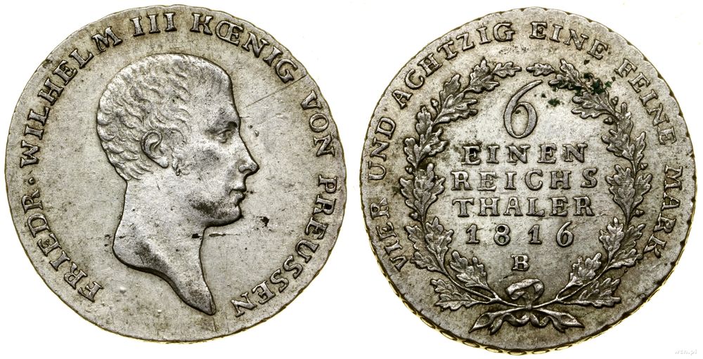 | Opis: | Niemcy - Prusy – królestwo (1701–1918) - Fryderyk Wilhelm III (1797–1840), 1/6 talara, 1816 B, Wrocław |