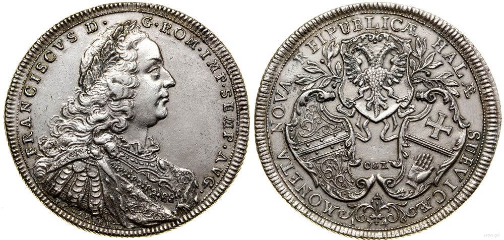 | Opis: | Niemcy - Schwäbisch Hall - Franciszek I Lotaryński (1745–1765), talar, 1746 CGL, Norymberga, Aw: Popiersie władcy w prawo, FRANCISCVS D G ROM IMP SEMP AVG, Rw: Udekorowane tarcze herbowe, MONETA NOVA REIPUBLICAE HALAE |