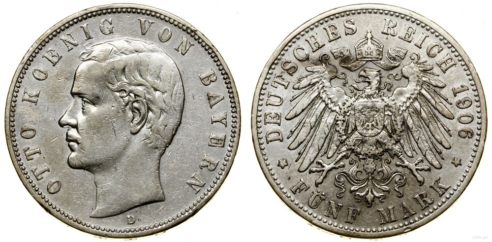 | Opis: | Niemcy - Bawaria - Otto (1886–1913), 5 marek, 1906 D, Monachium |