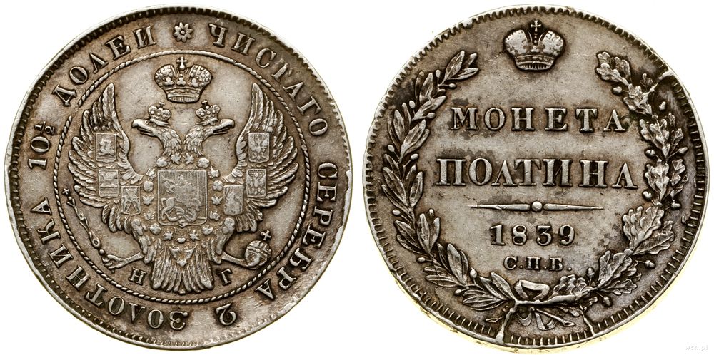 | Opis: | Rosja - Mikołaj I (1825–1855), połtina, 1839 СПБ НГ, Petersburg |
