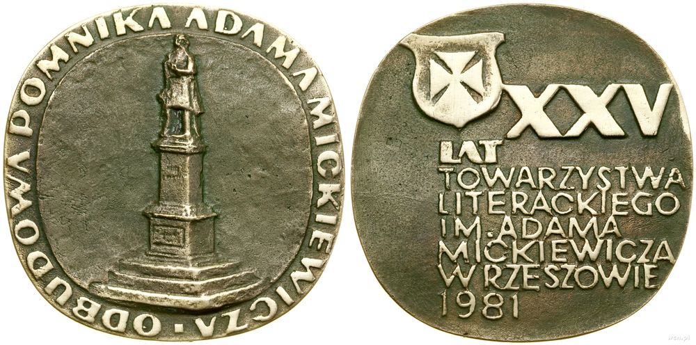 | Opis: | Polska - Polska Rzeczpospolita Ludowa (1952–1989), Odbudowa Pomnika Adama Mickiewicza, 1981, Aw: Widok pomnika, • ODBUDOWA POMNIKA ADAMA MICKIEWICZA, Rw: Herb Rzeszowa, po prawej XXV, niżej LAT / TOWARZYSTWA / LITERACKIEGO / IM. ADAMA / MICKIEWICZA / W RZESZOWIE / 1981 |