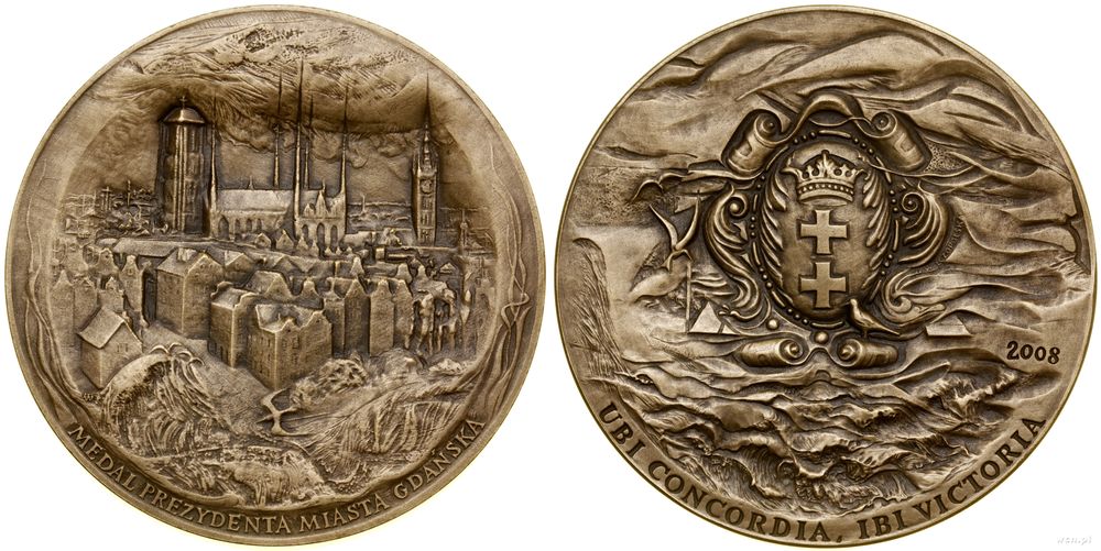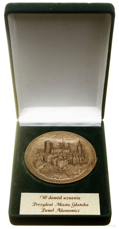 | Dodatkowe informacje: | tombak, 69.9 mm, 127.92 g, dodatkowo eleganckie pudełko z dedykacją "W dowód uznania / Prezydent Miasta Gdańska / Paweł Adamowicz |