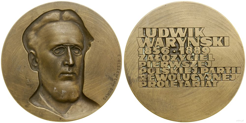 | Opis: | Polska - Polska Rzeczpospolita Ludowa (1952–1989), Ludwik Waryński 1856–1889, 1973, Warszawa, Aw: Popiersie lekko w prawo, po prawej sygnatura E. OLSZEWSKA-BORYS, Rw: LUDWIK / WARYŃSKI / 1856 • 1889 / ZAŁOŻYCIEL / PIERWSZEJ / POLSKIEJ PARTII / REWOLUCYJNEJ / PROLETARIAT, projektowała i wykonała Ewa Olszewska Borys |