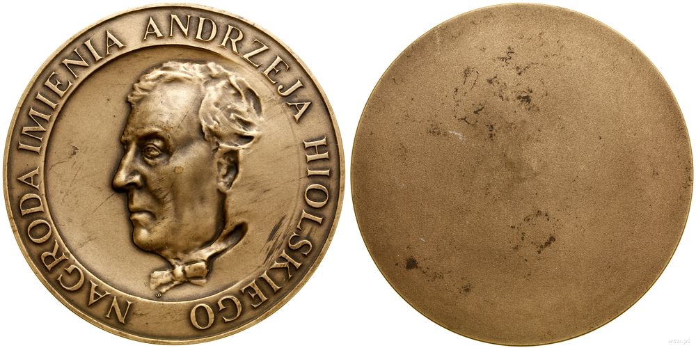 | Opis: | Polska - III Rzeczpospolita Polska (od 1989), jednostronny medal nagrodowy, Warszawa, Głowa w lewo, NAGRODA IMIENIA ANDRZEJA HIOLSKIEGO |
