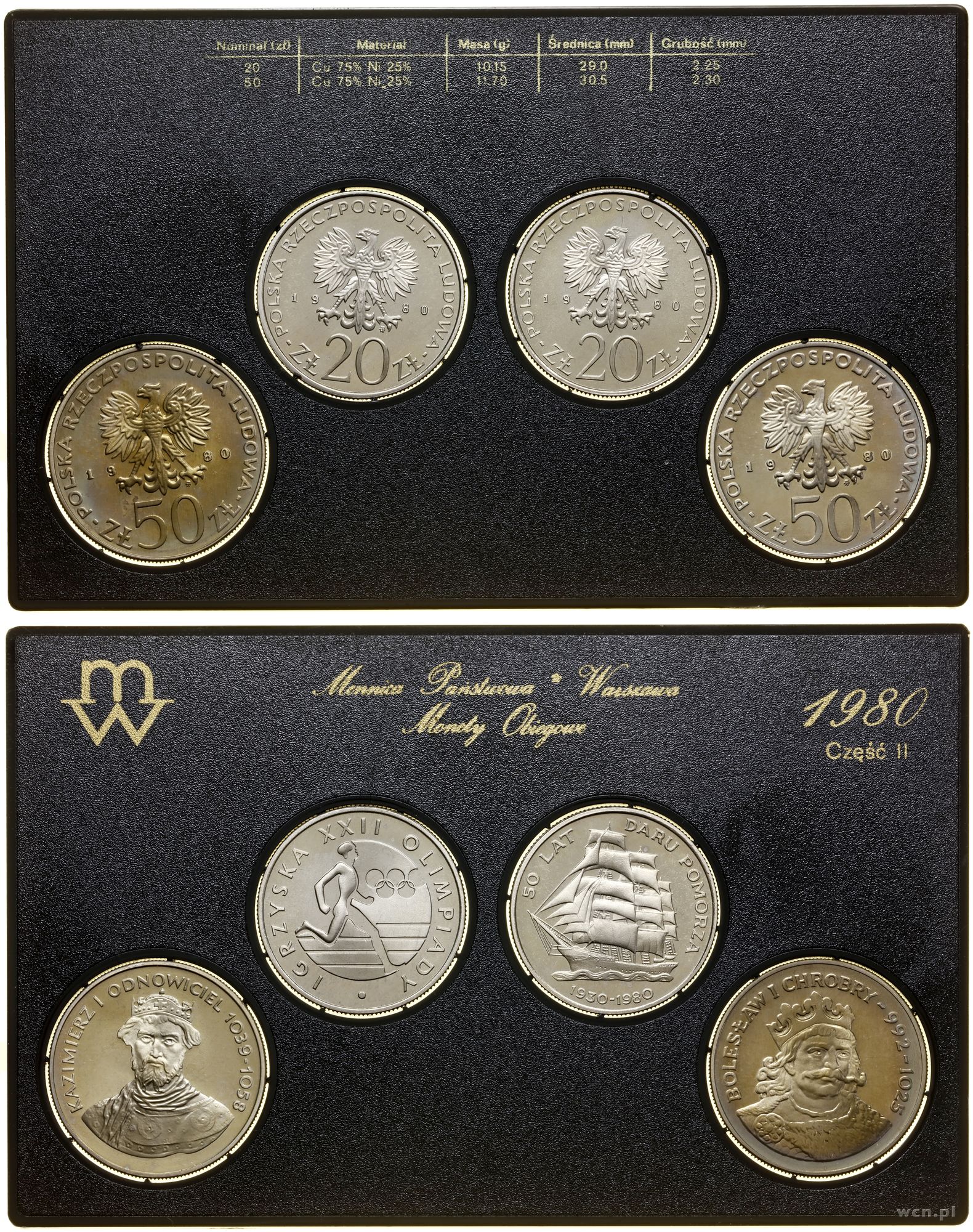 w zestawie: 10 groszy, 20 groszy, 2 złote, 5 złotych, 20 ... | I |