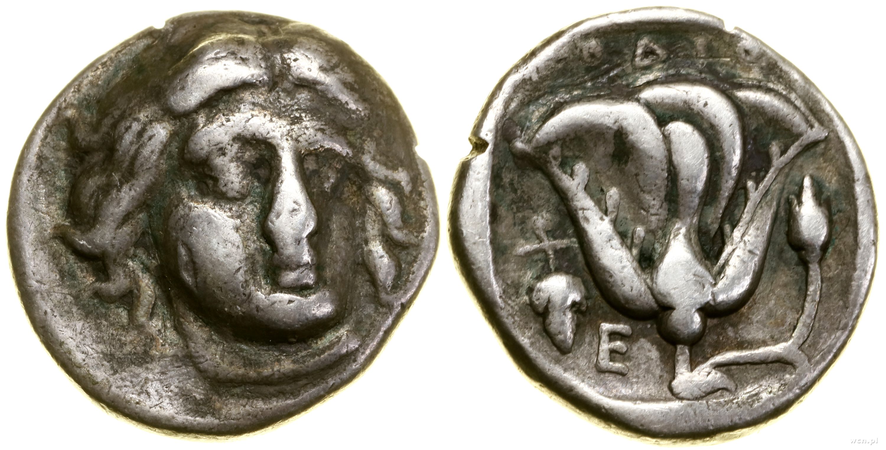 Aw: Głowa Heliosa trzy-czwarte w prawo, Rw: Kwiat róży na... | III/IV |