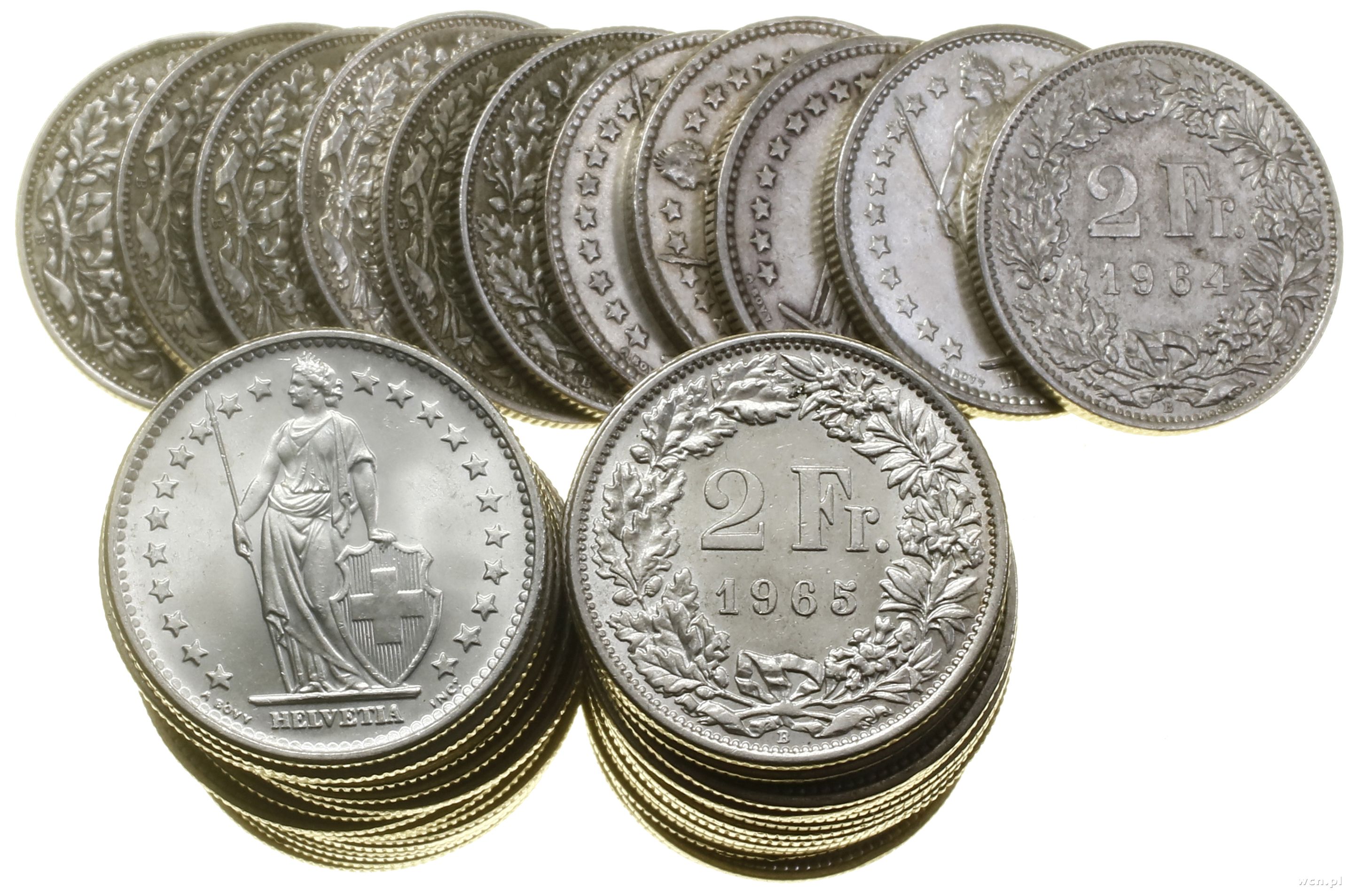 Szwajcaria, zestaw 50 x 2 franki, 2 x 1920, 2 x 1921, 1922, 4 x 1939, 1940