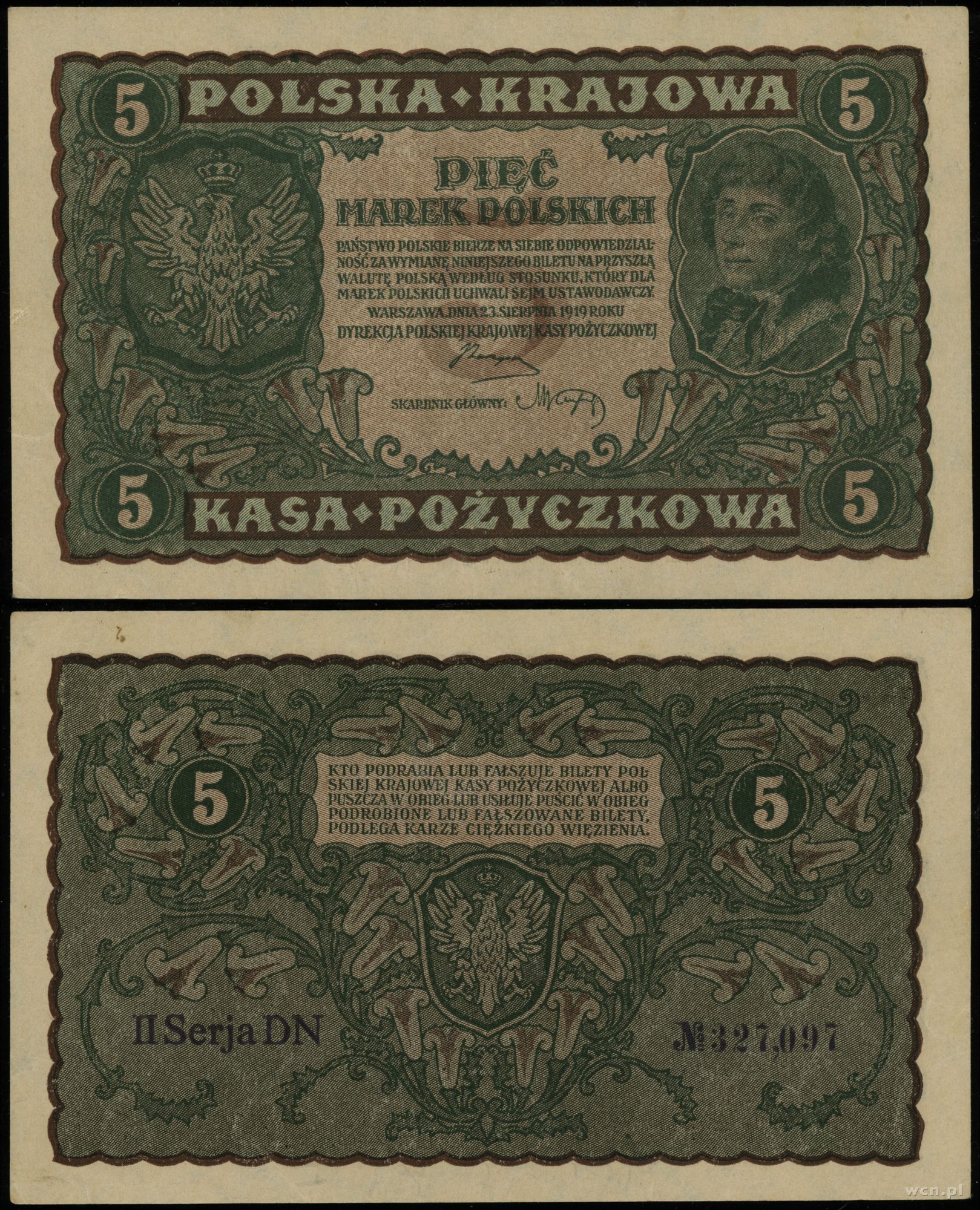 Polska, 5 marek polskich, 23.08.1919
