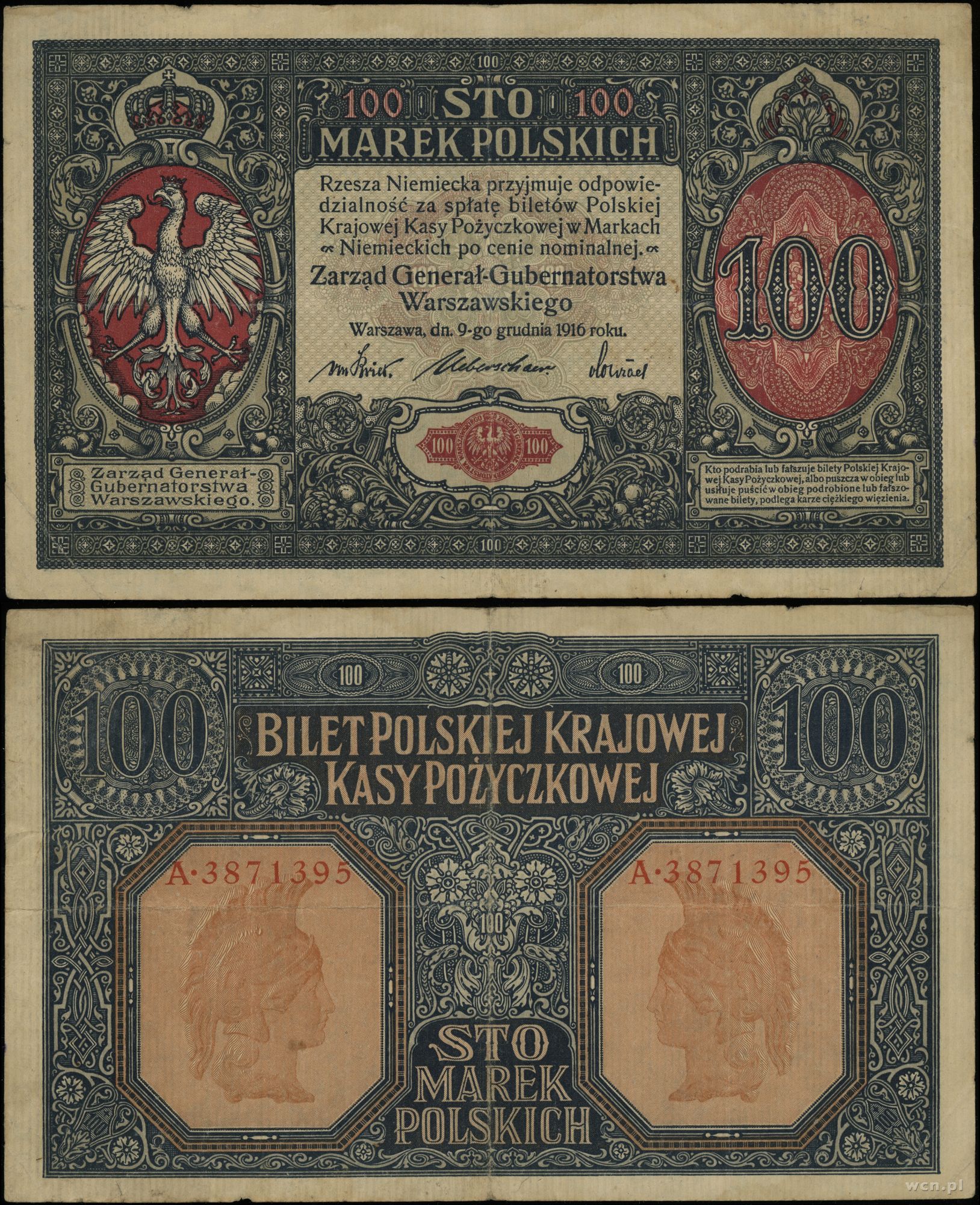Polska, 100 marek polskich, 9.12.1916