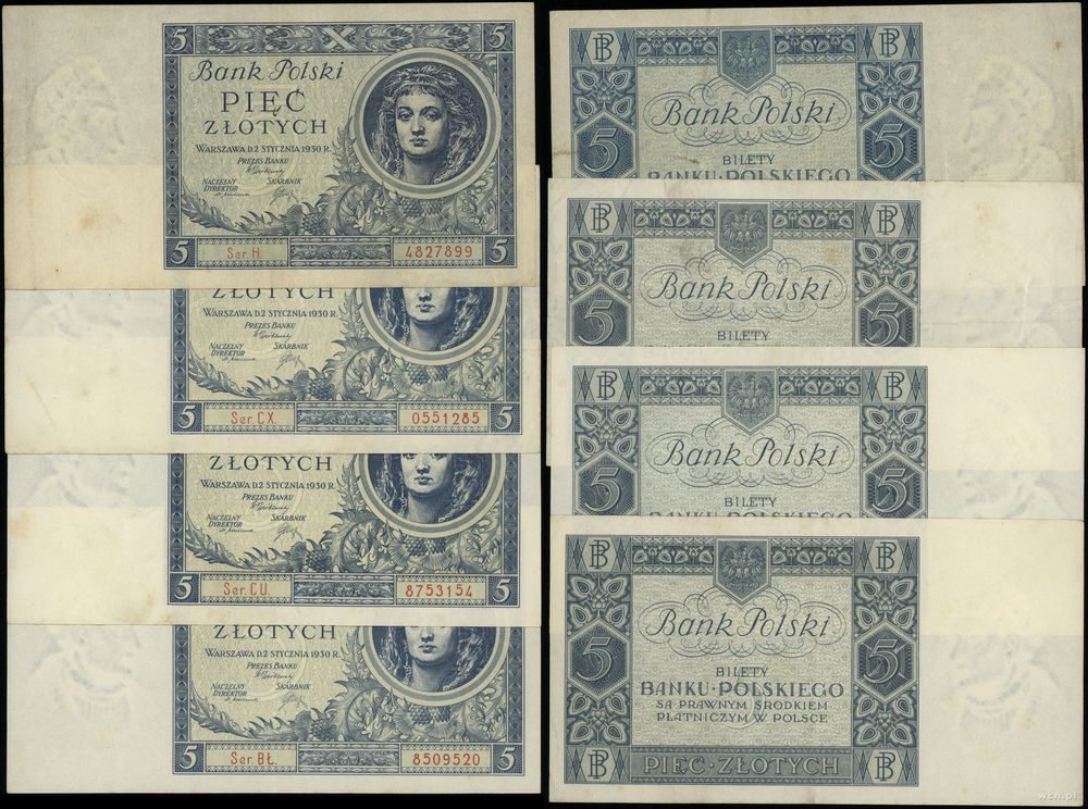 Polska, zestaw: 4 x 5 złotych, 2.01.1930