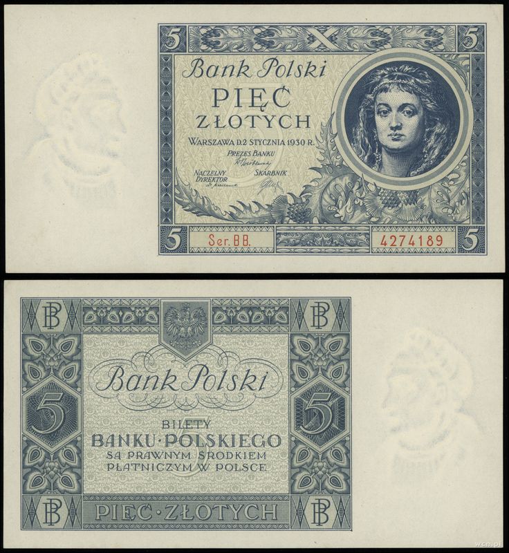 | Opis: | Polska - II Rzeczpospolita Polska (1918–1939) - emisje po reformie Władysława Grabskiego, 2 złote, 2.01.1930, seria BB., numeracja 4274189 |