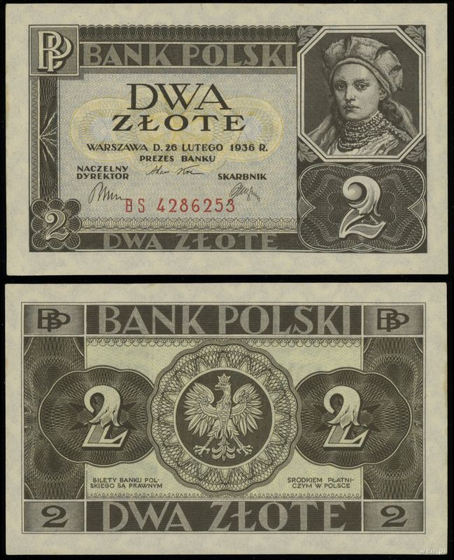 | Opis: | Polska - II Rzeczpospolita Polska (1918–1939) - emisje po reformie Władysława Grabskiego, 2 złote, 26.02.1936, seria BS, numeracja 4286253 |
