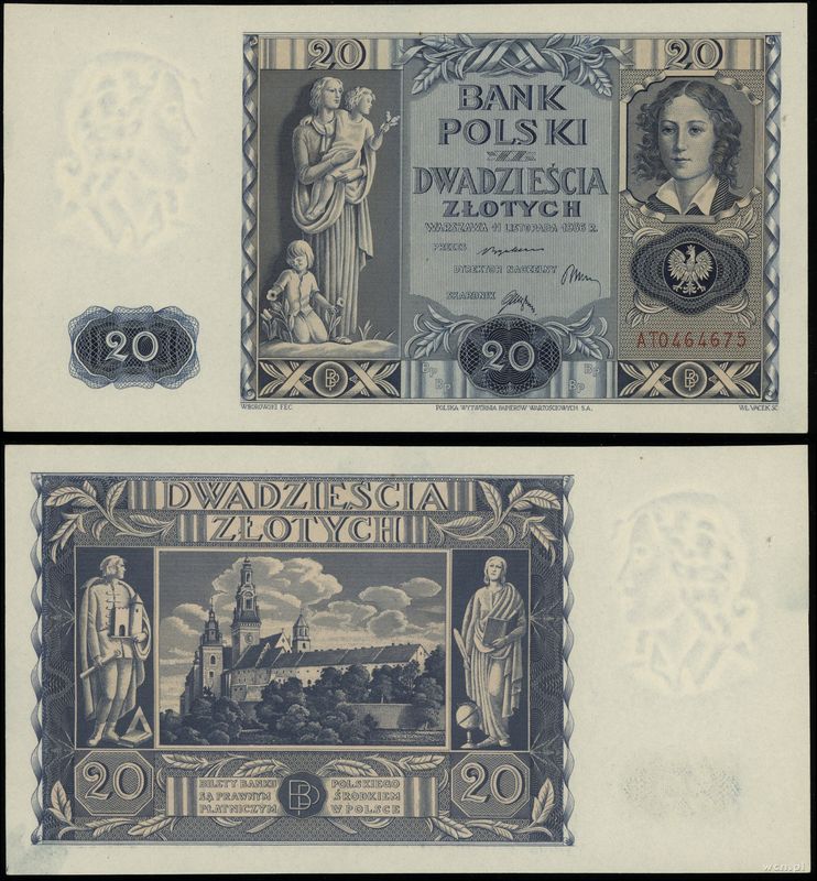 | Opis: | Polska - II Rzeczpospolita Polska (1918–1939) - emisje po reformie Władysława Grabskiego, 20 złotych, 11.11.1936, seria AT, numeracja 0464675 |