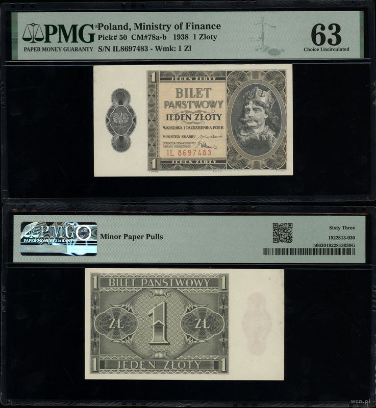 | Opis: | Polska - II Rzeczpospolita Polska (1918–1939) - emisje po reformie Władysława Grabskiego, 1 złoty, 1.10.1938, seria IL, numeracja 8697483 |
