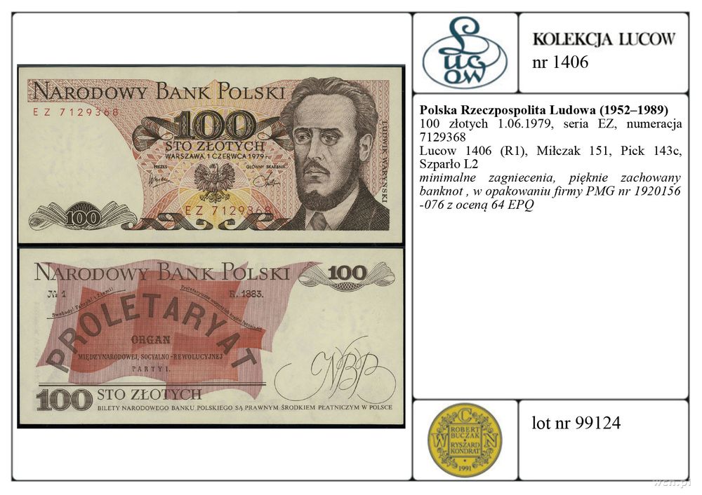 | Opis: | Polska - Polska Rzeczpospolita Ludowa (1952–1989), 100 złotych, 1.06.1979, seria EZ, numeracja 7129368 |