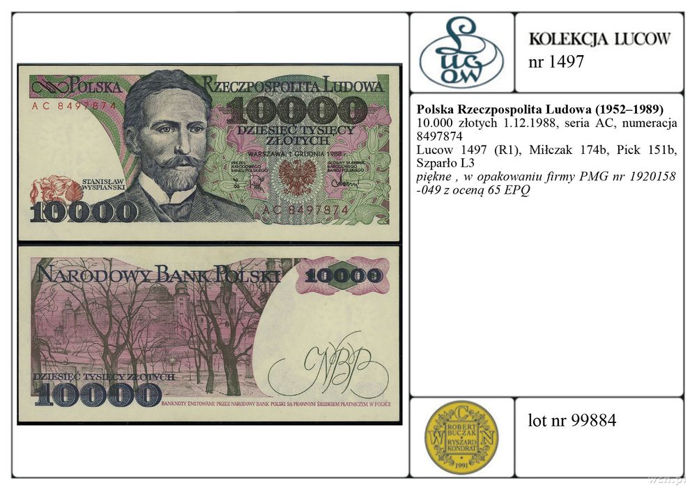 | Opis: | Polska - Polska Rzeczpospolita Ludowa (1952–1989), 10.000 złotych, 1.12.1988, seria AC, numeracja 8497874 |