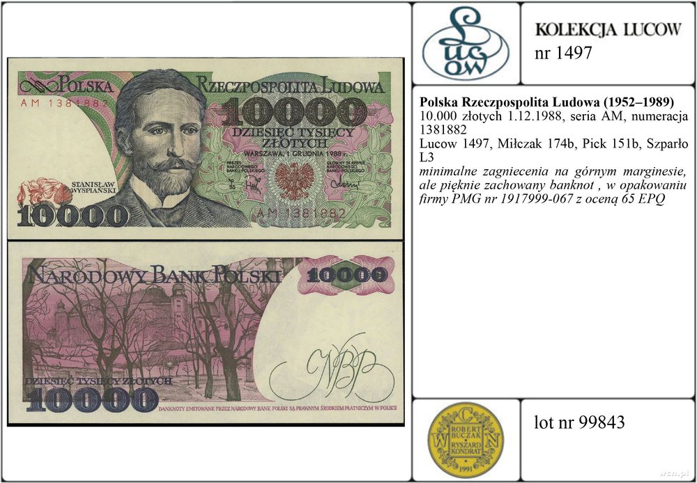 | Opis: | Polska - Polska Rzeczpospolita Ludowa (1952–1989), 10.000 złotych, 1.12.1988, seria AM, numeracja 1381882 |