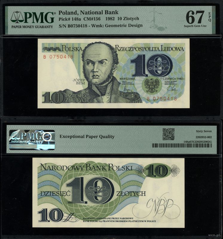 | Opis: | Polska - Polska Rzeczpospolita Ludowa (1952–1989), 10 złotych, 1.06.1982, seria B, numeracja 0750418 |