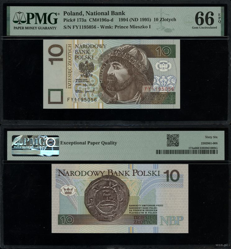 | Opis: | Polska - III Rzeczpospolita Polska (od 1989), 10 złotych, 25.03.1994, seria FY, numeracja 1195056 |