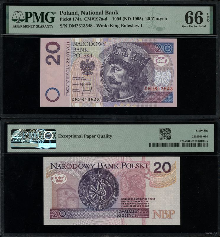 | Opis: | Polska - III Rzeczpospolita Polska (od 1989), 20 złotych, 25.03.1994, seria DM, numeracja 2613548 |